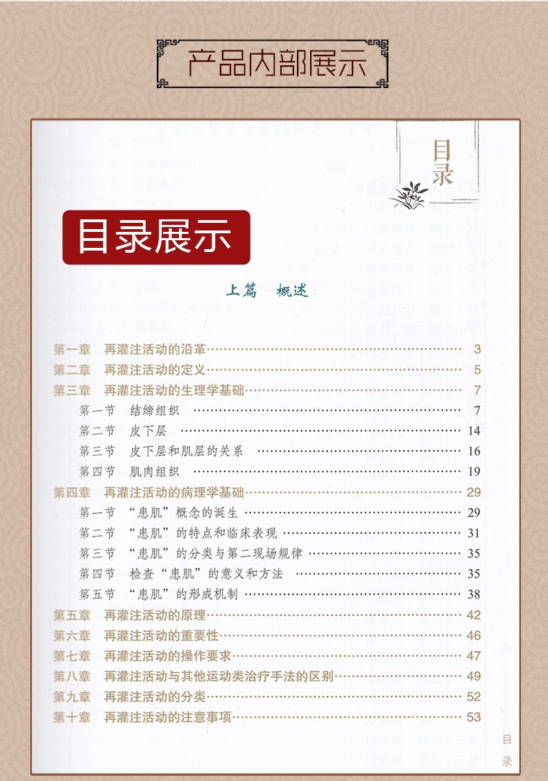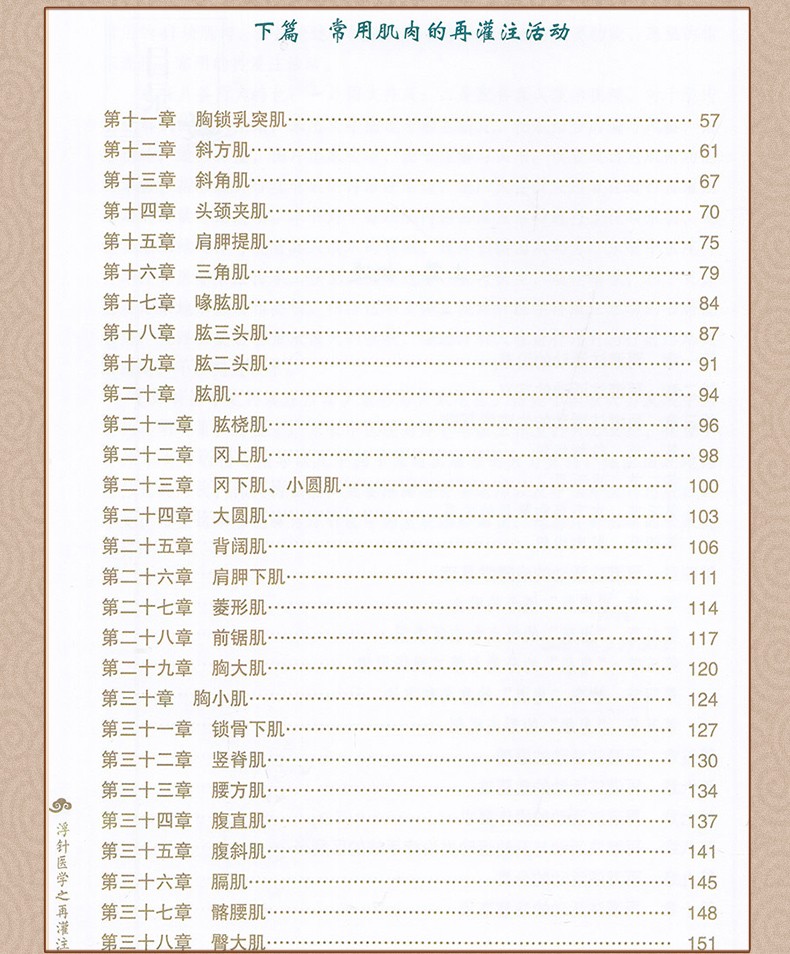 本書主要內容分為總論和各論,總論部分重點論述浮針再灌注活動的定義、原理、設計方法和注意事項; 各論部分具體介紹臨床常用的四十塊肌肉的解剖、功能、體表標誌、患肌特徵及相關症狀,再灌注活動的設計思路與具體操作,採用少量文字介紹,大量圖片顯示,二維碼掃碼視頻的立體表現形式。 本書大量採用圖片、視頻,從肌肉的解剖、功能、體表標誌,再灌注活動,直觀的展現給讀者,讓讀者更容易、更快速的學習、記憶、應用再灌注活動。 該書作為為浮針教學的主要輔助用書,可以使眾多的浮針從業者、浮針愛好者,以及針灸、康復、中醫、骨傷等專業人士受益。