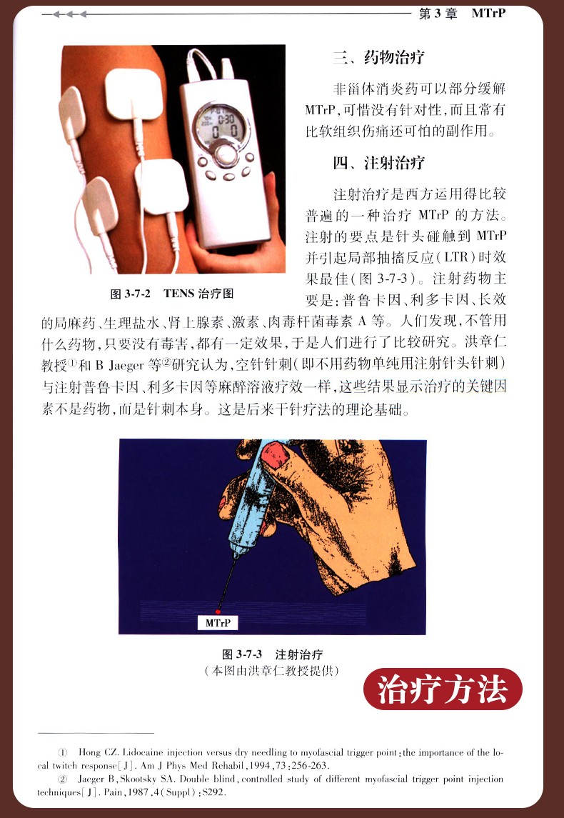 第1章浮針療法概論第1節浮針療法的概念和命名一、浮針療法的概念二、浮針療法的命名第2節浮針療法的歷程一、浮針療法的形成二、浮針療法的發展第3節浮針療法的特點一、操作特點二、療效特點三、診斷特點第2章浮針療法的操作方法第1節明確診斷第2節浮針針具的結構和規格一、浮針的結構二、 浮針規格、外觀及保存第3節針刺前的準備一、選擇體位二、解釋說明三、明確病痛點四、確定進針點五、消毒第4節針刺方法一、針刺的方向二、進針、退針、運針和掃散三、留管和出針四、針刺間隔時間、次數和療程第5節浮針療法的輔助動作第6節异常情况的處理和預防一、皮下瘀血二、暈針三、 動脈出血第7節浮針療法注意事項第3章MTrP第1節概念和歷史第2節MTrP的特點和臨床表現一、MTrP的主要特點二、臨床表現三、體征四、檢測第3節MTTP的分類第4節檢查MTrP的意義和方法第5節針灸與MTrP第6節形成機理一、神經.肌肉接頭處的興奮傳遞二、骨骼肌的興奮收縮耦聯三、骨骼肌的收縮四、 能量危機學說第7節以往的治療方法一、局部噴灑與牽拉二、物理治療三、藥物治療四、注射治療五、幹針治療第8節復發因素一、機械性因素二、系統性因素第4章浮針療法臨床的一般規律第1節治療前的療效預測一、不同的病痛感覺效果不同二、不同的組織損傷效果不同三、病變範圍不同效果不同四、 不同病程效果也不同五、不同的疼痛情狀效果不同六、不同身體狀態效果不同第2節即時效果的影響因素一、診斷不對二、體位選擇不適三、進針點選擇不佳四、掃散動作不嫺熟五、左手配合不够六、病人本身的身體狀況七、 病人沒有很好配合第3節針刺次數和療效的關係第4節遠期效果的影響因素第5章浮針療法的機理第1節皮下層第2節結締組織組成和結構一、疏鬆結締組織二、緻密結締組織三、脂肪組織四、網狀組織第3節結締組織與針刺機械力的關係一、針刺手法影響最大的組織是皮下組織二、 機械力可導致成纖維細胞發生形態學變化三、機械力對成纖維細胞細胞骨架的影響四、結締組織成纖維細胞在機械力作用下的生化改變五、疏鬆結締組織與針灸、浮針的關係第4節浮針療法與液晶態理論第5節浮針療法與引徠效應一、循經感傳和引徠效應二、引徠效應與趨病性循行三、順力循行四、 回避效應五、阻攔效應第6節浮針療法與神經系統的關係一、關於針刺鎮痛的研究二、關於閘門學說第7節浮針療法的中醫傳統闡釋一、皮膚的中醫學說二、皮部理論三、近治原理四、“以痛為輸”理論五、《黃帝內經》刺法第8節我們的觀點一、關於機械力偶聯和液晶態理論二、關於神經的作用三、 關於引徠效應的作用四、 關於浮針治療後其他症狀也改變的道理第9節輔助動作的理由第6章浮針療法治療頭面部病痛第1節緊張性頭痛第2節顳頜關節痛第3節三又神經痛第4節牙痛第5節面神經炎第7章浮針療法治療頸項部病痛第1節落枕第2節揮鞭傷第3節頸椎病第4節高位頸椎病第8章浮針療法治療胸背部病痛第1節胸壁扭挫傷第2節肋問 神經痛第3節帶狀皰疹後遺神經痛第9章浮針療法治療腰骶部病痛第1節急性腰扭傷第2節腰肌勞損第3節第三腰椎橫突綜合征第4節强直性脊柱炎第5節腰椎間盤突出症第6節骶髂關節炎第7節尾痛症第10章浮針療法治療上肢部病痛第1節肩關節周圍炎第2節偏癱後肩痛第3節網球肘第4節腕管綜合征第5節類風濕關節 炎第6節橈骨莖突狹窄性腱鞘炎第7節扳機指第11章浮針療法治療常見下肢部軟組織傷痛第1節股骨頭缺血性壞死第2節膝內軟組織傷痛第3節慢性膝側軟組織傷痛第4節急性踝關節扭傷第5節陳舊性踝關節損傷第6節跟痛症第7節痛風性關節炎第12章浮針療法治療內科病痛第1節慢性胃炎第2節膽石症第3節輸尿管結 石第4節痛經第5節慢性盆腔痛第6節癌痛附常用名詞解釋後記