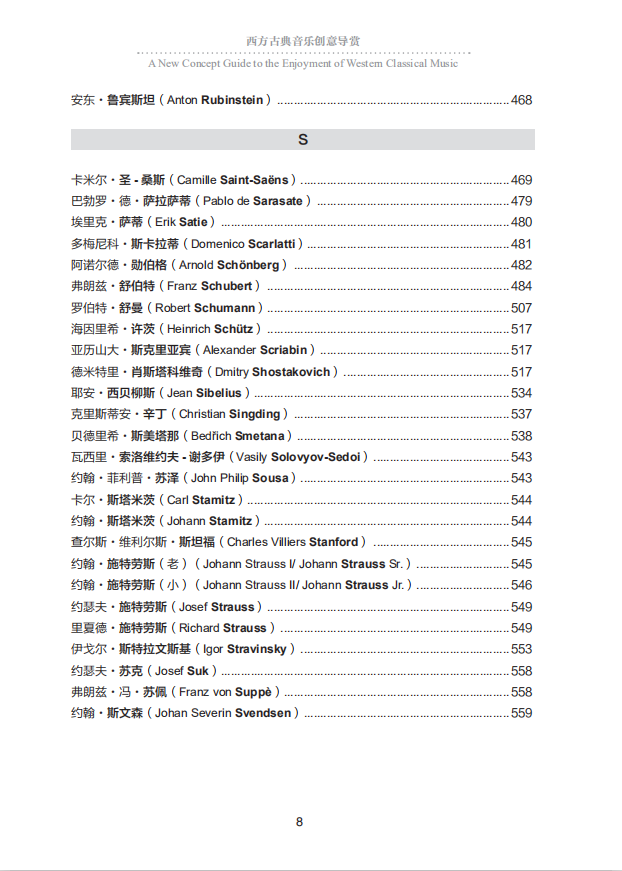 本書介紹西方古典音樂,將作品列為重點,將其按照難易程度分別歸入四大階梯,並對大多數作品加以簡單解說,以便於讀者“拾級而上”。* 階梯:此階梯的作品與西方文化傳統的相關度*,不需要音樂知識墊底。 具有不同文化背景、不同文化水准的人,普遍能够欣賞。 第二階梯:第二階梯的作品,則需要聆聽過一定數量的作品作為鋪墊,才能真正喜歡。 第三階梯:欣賞第三與第四階梯的作品,則需要有更廣闊的知識面,對西方文化傳統、西方各民族的音樂欣賞習慣、具體音樂作品創作的歷史背景有更多的瞭解,較長的欣賞經歷、更多作品的鋪墊、對不同風格作品較大的包容度,以及較豐富的音樂基本知識。 第四階梯:列入這一階梯的,首先是大多數現代主義音樂作品。 這種音樂打破了傳統音樂的基本法則,常常超越了人們的聽覺和音樂欣賞習慣,故而欣賞難度*。