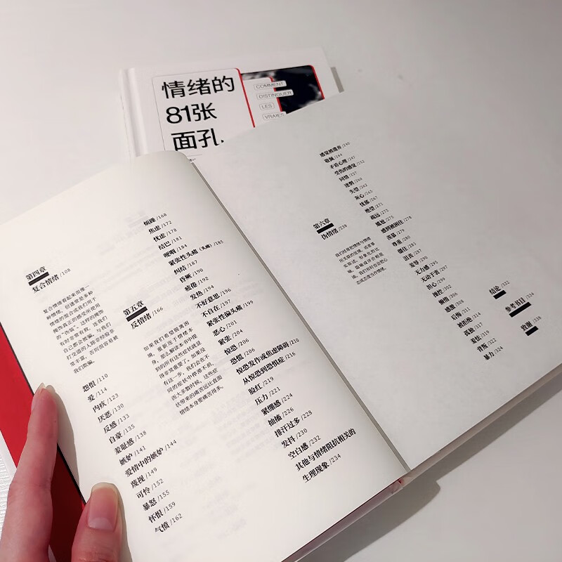 本書講情緒分為單一情緒、複合情緒、偽情緒、反情緒四個類別,共介紹了81種情緒。 旨在說明有些確實是情緒,如感動、快樂、傷心; 而有些是複雜的情緒,摻雜好幾種感受,複合情緒很多時候是一種偽裝,如可憐背後的邏輯是虛偽的; 反情緒如焦慮、緊張、有壓力等,讓我們確實感到生理和心理兩個層面的難受; 還有些是偽情緒,多為態度、心態,比如後悔、失望、衝突。 同時,作者闡述了每種情緒背後的需求,以及如何面對情緒,幫助我們依靠情緒,做出對自己最有利的選擇。