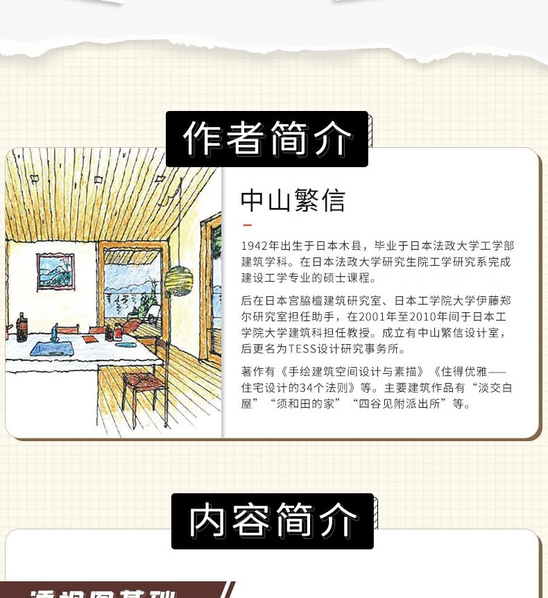 中山繁信,1942年出生於日本木縣,畢業於日本法政大學工學部建築學科。在日本法政大學研究生院工學研究系完成建設工學專業的碩士課程。後在日本宮脇檀建築研究室、日本工學院大學伊藤鄭爾研究室擔任助手,在2001年至2010年間於日本工學院大學建築科擔任教授。成立有中山繁信設計室,後更名為TESS設計研究事務所。著作有《手繪建築空間設計與素描》《世界最美住宅建築解剖圖鑑》《住得優雅——住宅設計的34個法則》等。主要建築作品有“淡交白屋”“須和田的家”“四谷見附派出所”等。