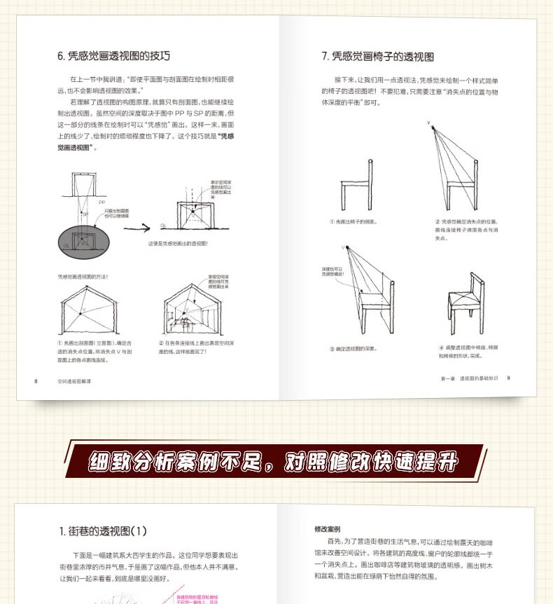 從外部空間到內部空間,細緻講解讓讀者更快了解透視關係,理解透視原理。