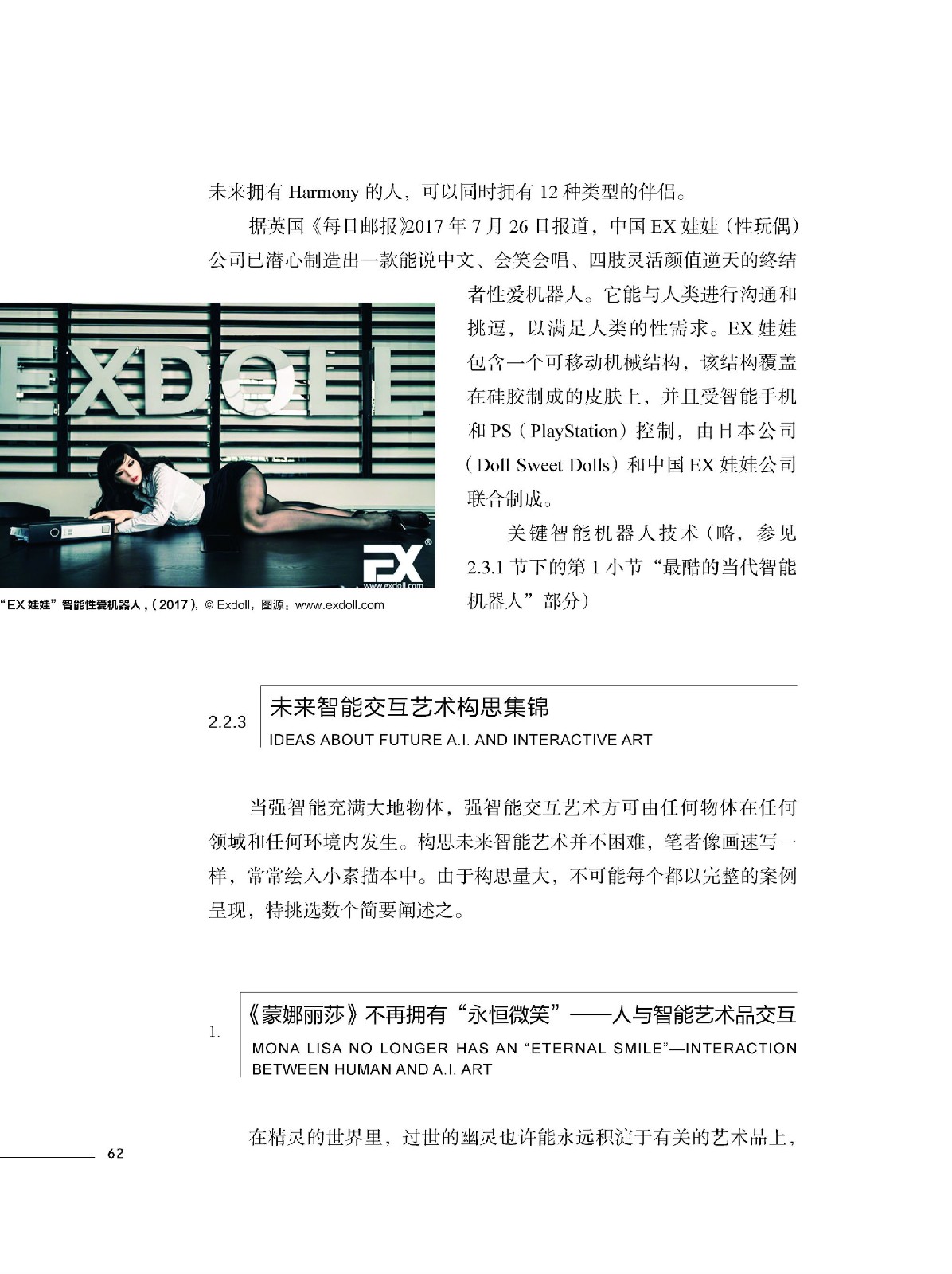 第2章:重點演繹了强人工智慧藝術的未來擴展軌跡與特徵; 論述了科技智慧將重構藝術家創造力的內涵、强人工智慧挑戰藝術的本質與特性。