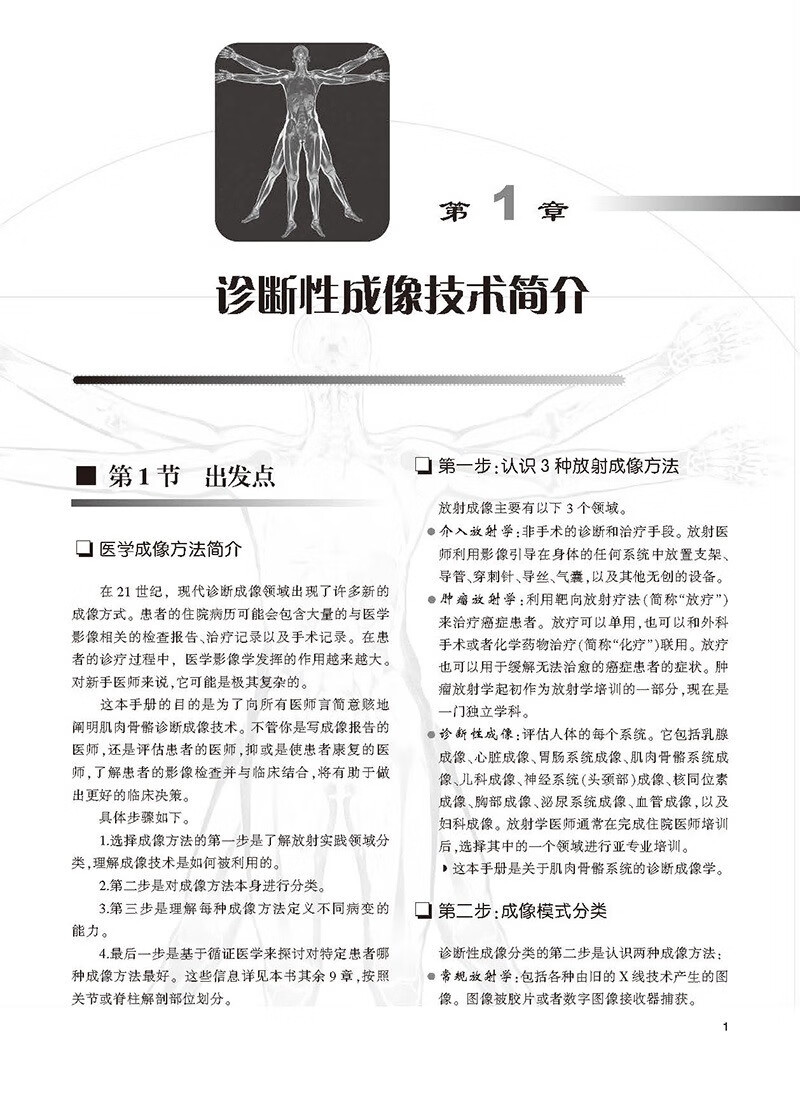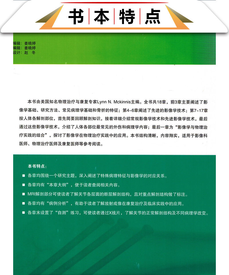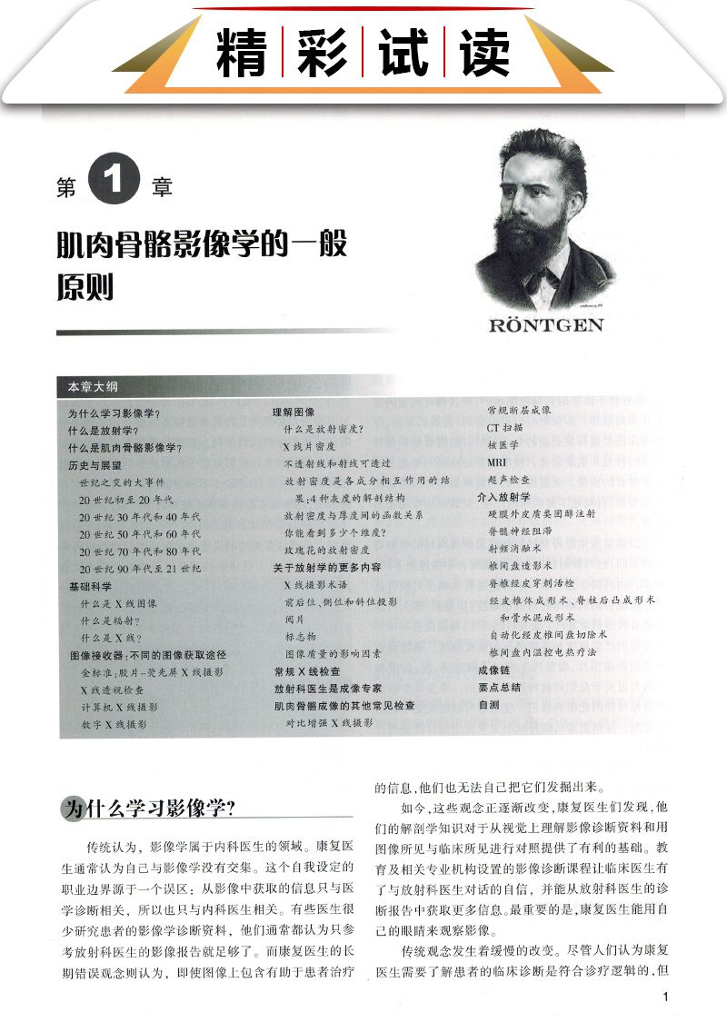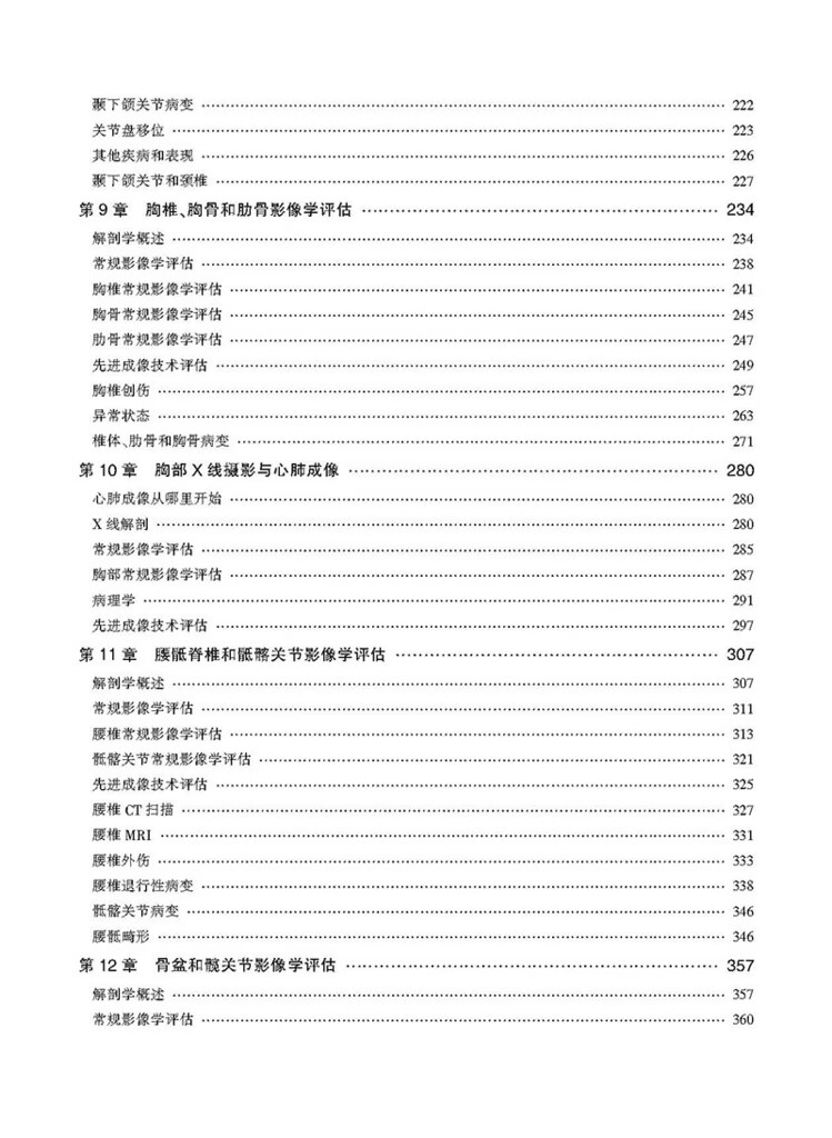 本書每章均包含骨骼學和結締組織基本結構概述,並加入了CT和MRI等影像學新技術,對讀者需要瞭解的特殊病理學知識也進行了闡述。 這種編排管道使得讀者不論從哪個章節入手,均易於理解本書的內容。 本書各章末均包含人體各部位常見的外傷和病理學內容,並給出具體病例解析,包括病史、影像檢查和體格檢查、治療和預後等,且均有圖示。 各章末還有“要點總結”和“自測”內容,有助於讀者抓住重點,並通過影像解讀,考察自身實踐能力。