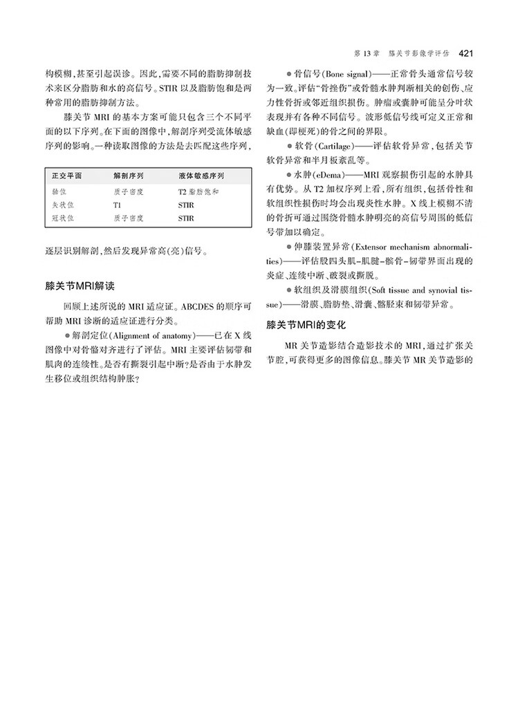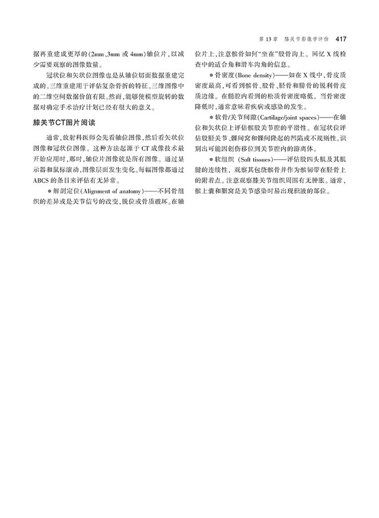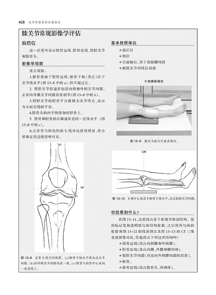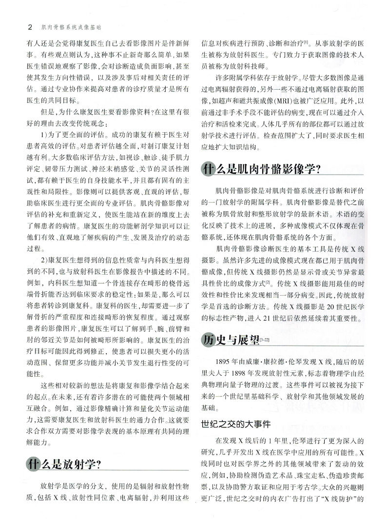 本書每章均包含骨骼學和結締組織基本結構概述,並加入了CT和MRI等影像學新技術,對讀者需要瞭解的特殊病理學知識也進行了闡述。 這種編排管道使得讀者不論從哪個章節入手,均易於理解本書的內容。 本書各章末均包含人體各部位常見的外傷和病理學內容,並給出具體病例解析,包括病史、影像檢查和體格檢查、治療和預後等,且均有圖示。 各章末還有“要點總結”和“自測”內容,有助於讀者抓住重點,並通過影像解讀,考察自身實踐能力。