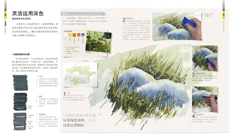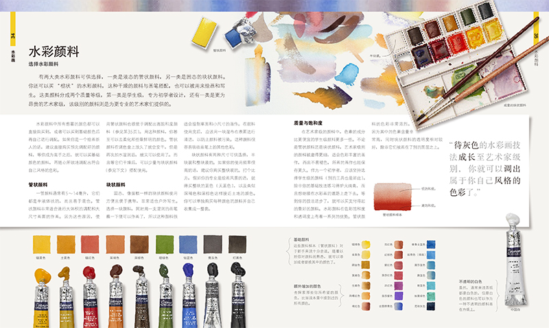 從基礎開始學習水彩畫技法:本書呈現的繪畫技巧齊全而有深度,能够磨煉你的觀察技巧,提升你的構圖能力,讓你進一步掌握各種主題的表現技法,激發不同風格的創作靈感。