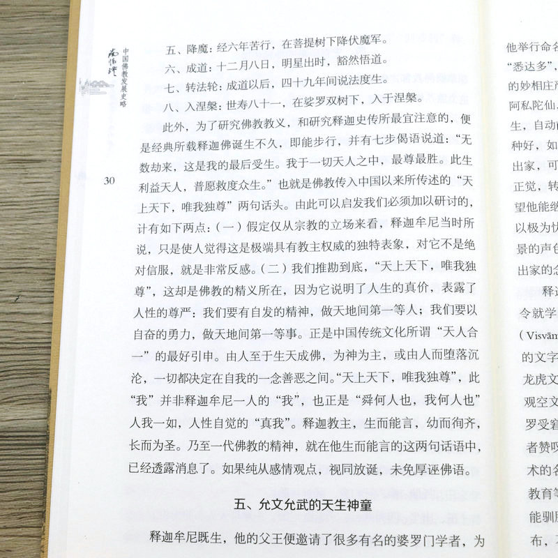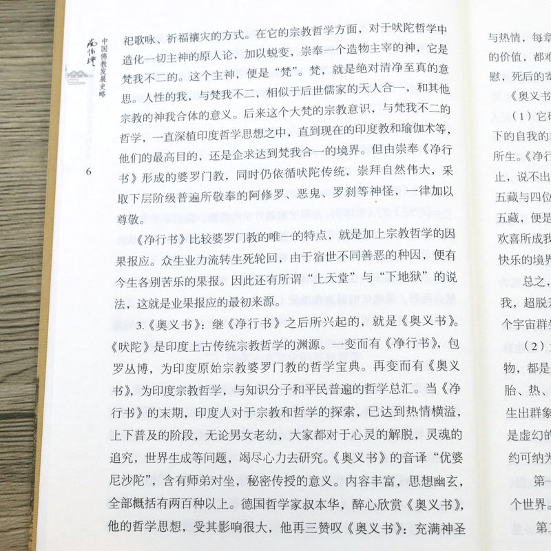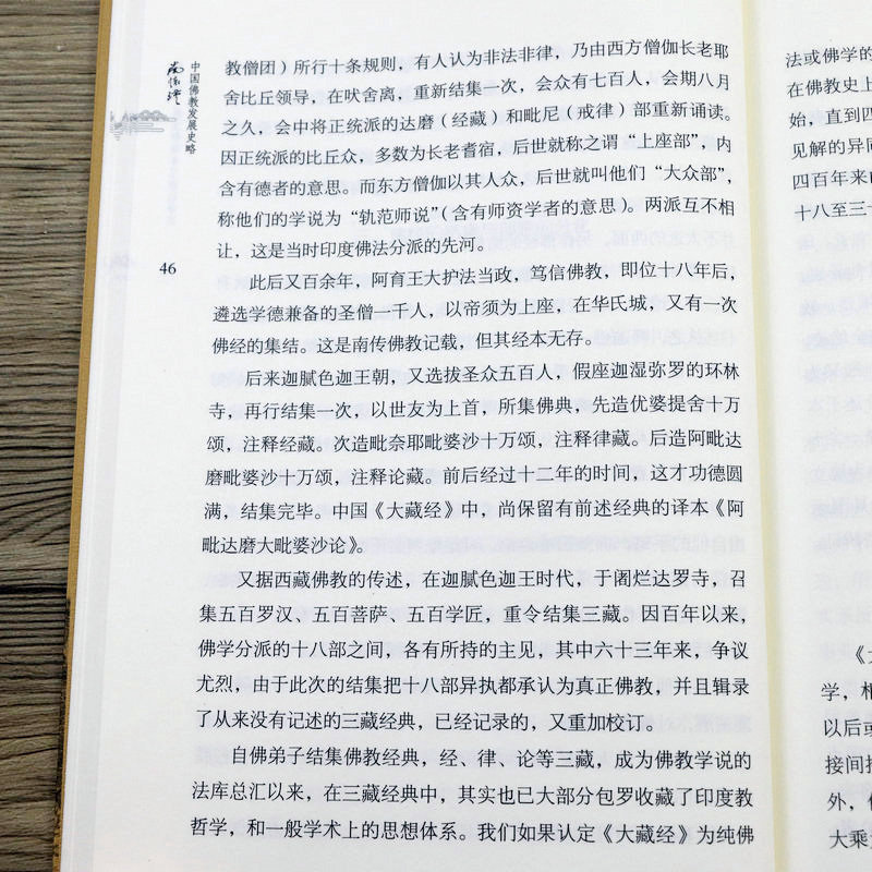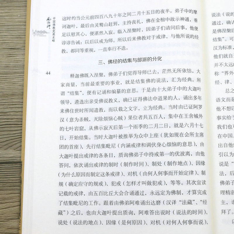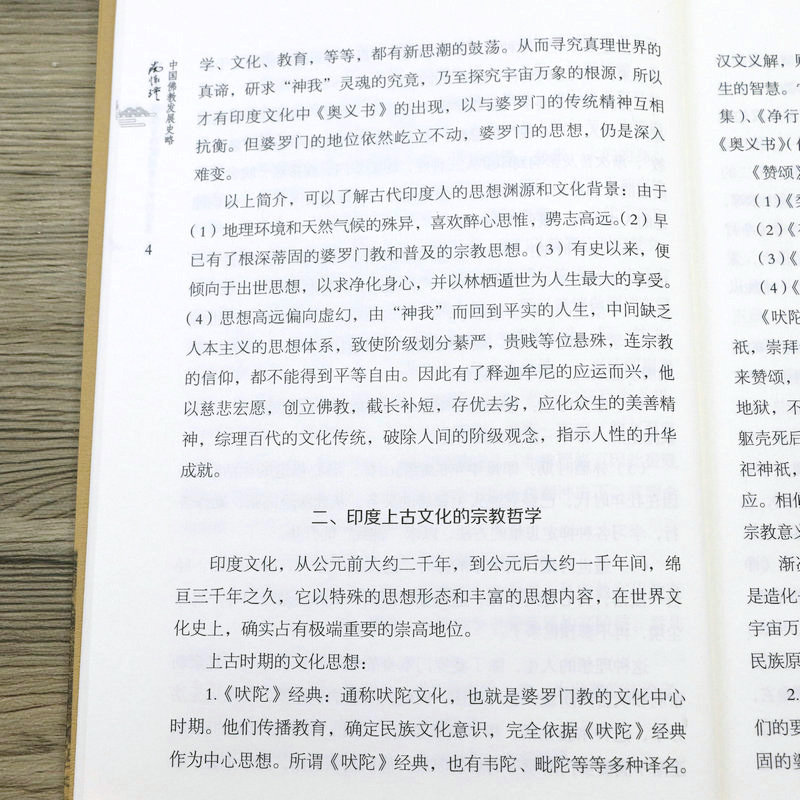 《中國佛教發展史略》分為五章,對古代印度的社會與宗教;佛教創始人釋迦牟尼的生平事迹;漢代至清代佛教的興衰變遷;二十世紀中國佛教的現狀與思考;以及亞洲和歐美各國的佛教概況等,作了簡明扼要的敘述。書末所附的《禪宗叢林制度與中國社會》,乃是研究佛教叢林制度的由來、內容及其社會影響的重要文章,頗具價值。