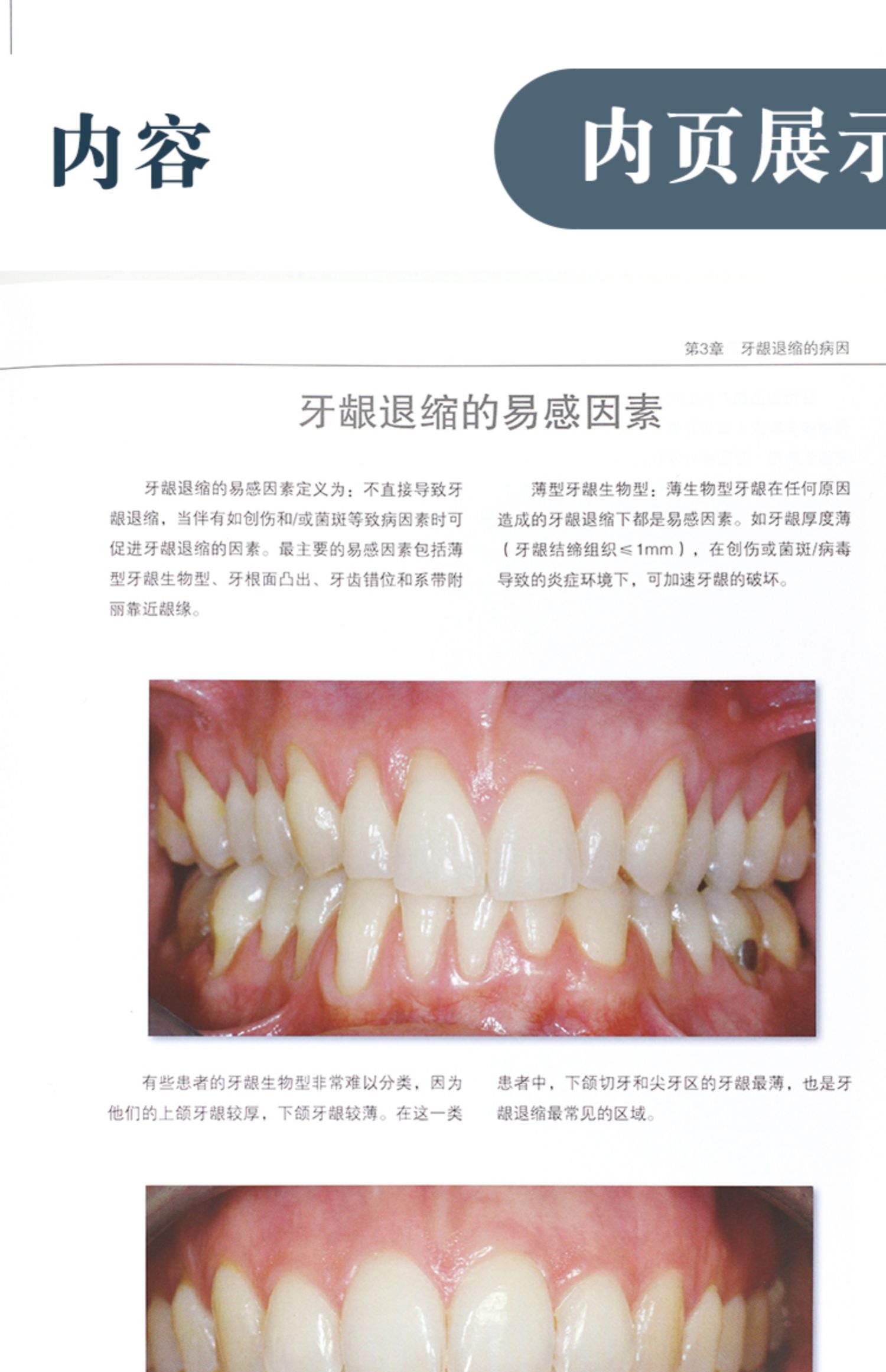 全書800餘頁,超過2000張高清手術圖片,共分為31個章節。 1.牙齦黏膜美學手術; 2.牙齦黏膜缺陷的診斷; 3.牙齦萎縮的病因; 4.牙齦萎縮的發病機理; 5.預後的牙齦萎縮; 6.複雜病例的診斷和預後牙齦萎縮; 7.預先確定根覆蓋; 8.治療牙齦萎縮; 9.根報導外科科技; 10.根的影響因素選擇的外科科技報導… 30.手術後的藥物和接受牙齦黏膜手術病人的口腔衛生; 31.外科手術儀器